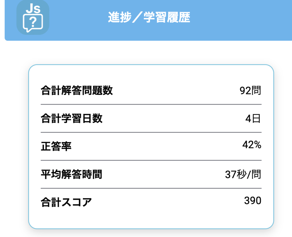 履歴・進捗画面では、解答履歴を集計したデータや学習履歴を確認することができ、学習状況の把握やモチベーションの維持を目的としています。